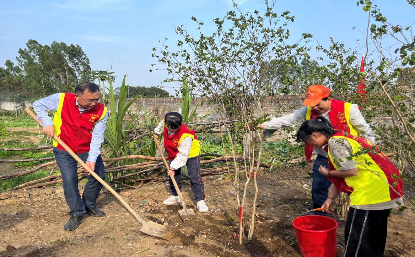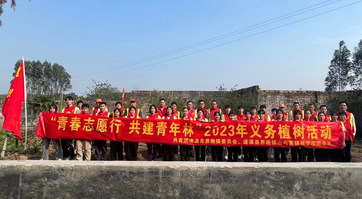 阳春三月,大地春回。在一年一度植树节来临之际,3月10日下午,界炮镇团委联合山内黄镜秋学校团总支在山内黄镜秋学校举行“青春志愿行 共建青年林”2023年义务植树活动。镇党委书记詹仲茗、镇团委书记吴晓聪等领导带领山内黄镜秋学校20多名师生及志愿者参加此次义务植树服务活动。