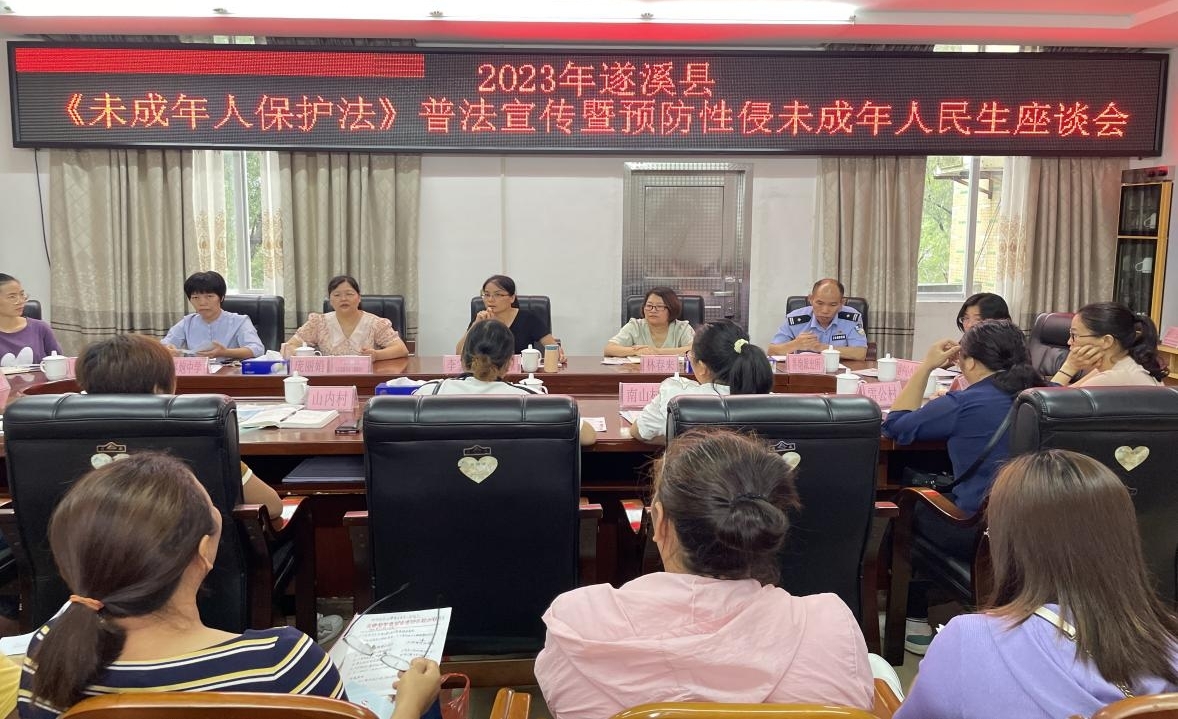 为切实做好《未成年人保护法》普法宣传工作,保护未成年人身心健康,保障未成年人合法权益,促进未成年人德智体美劳全面发展,6月8日,遂溪县妇联到我镇召开2023年遂溪县妇联《未成年人保护法》普法宣传暨预防性侵未成年人民生座谈会。遂溪县妇联副主席李雪鸥、权益部部长庞丽娟、广东省妇女维权与信息服务站(遂溪站)副站长李进凤等领导出席会议,镇派出所、村(社区)妇联主席、执委、妇女群众代表和幼儿园、小学、中学老师代表等30多人参加会议,会议由镇人大副主席、妇联主席林春来主持。