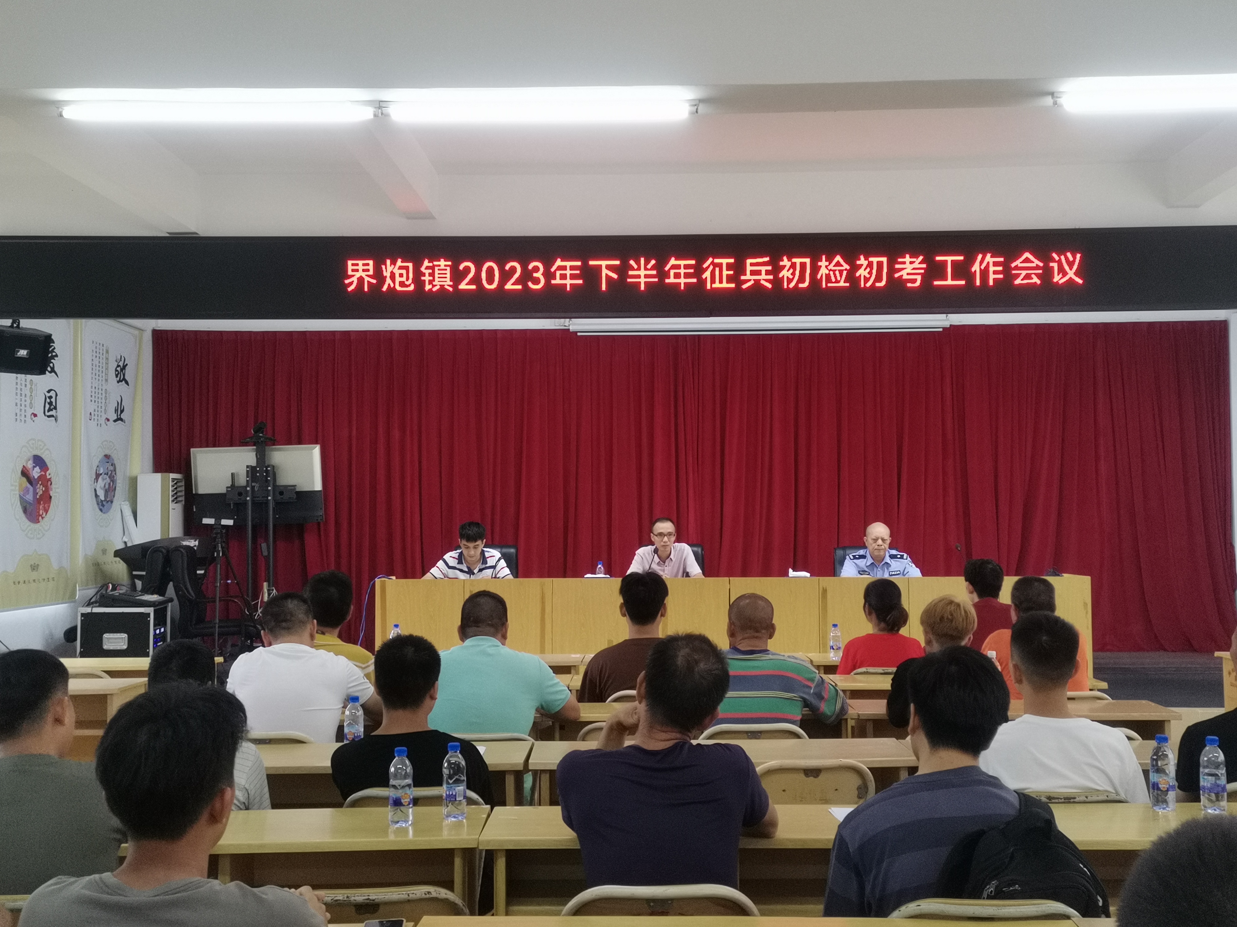 为高标准、高质量完成2023年下半年征兵工作,努力为部队输送更多优秀青年,8月3日下午,界炮镇组织应征青年开展征兵初检初考工作。镇人武部、界炮派出所、界炮镇卫生院工作人员及各村民兵连长、应征青年、陪同家属共百余人参加会议。