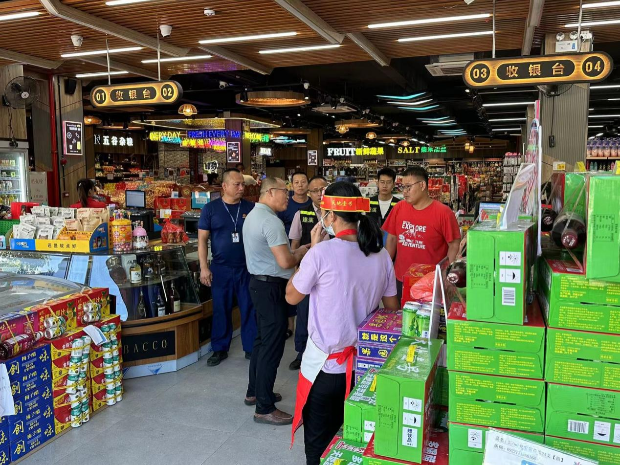 界炮镇党委副书记、镇⻓岑志东带队检查星荟超市安全隐患