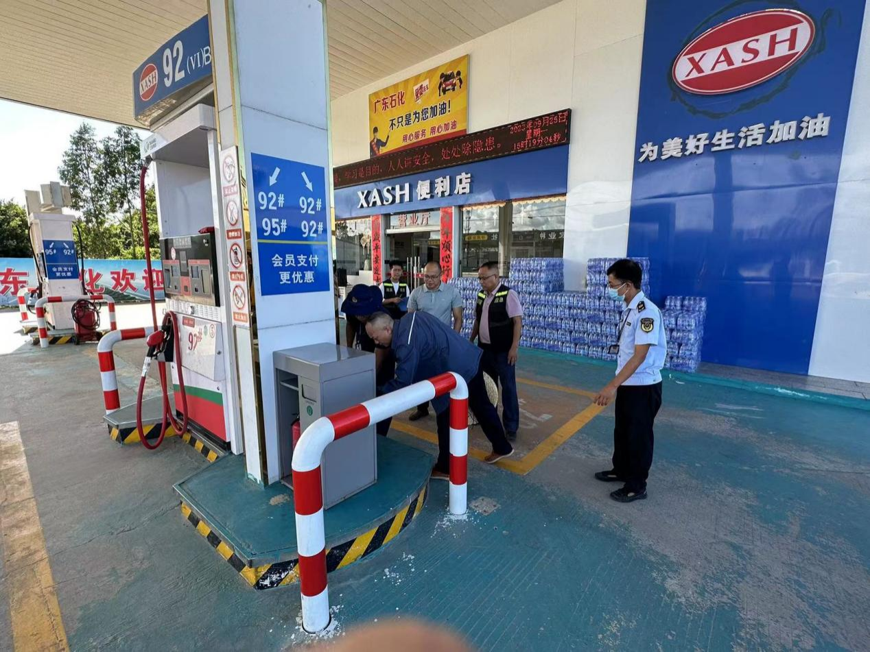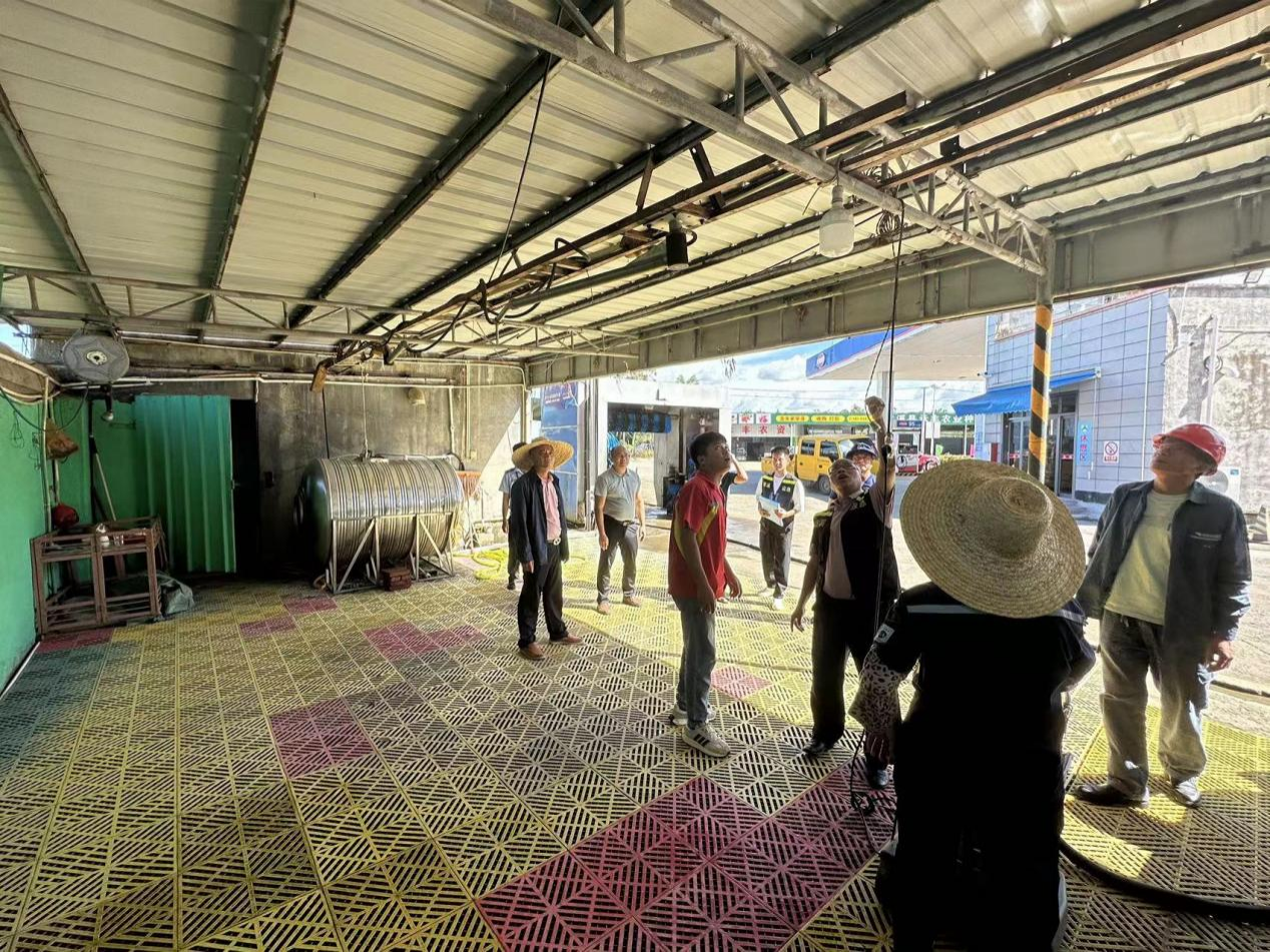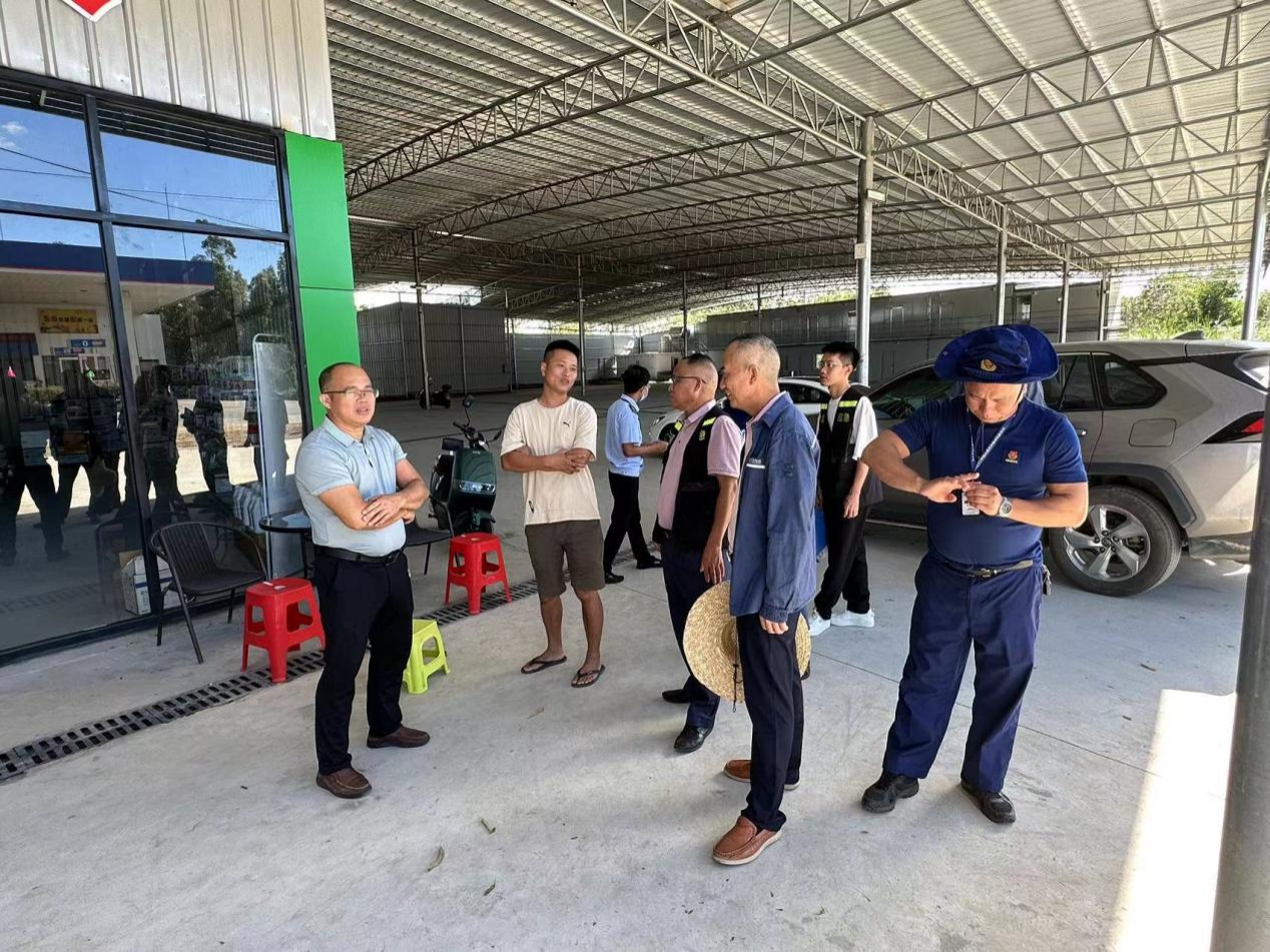 界炮镇党委副书记、镇⻓岑志东带队检查兴安加油站安全⽣产⼯作