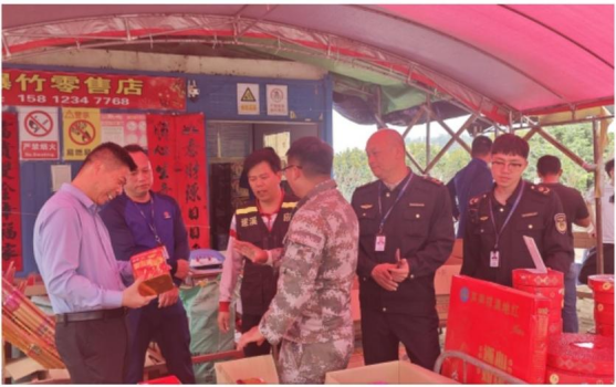 检查组深入辖区内九小场所、商超、燃气站、加油站等各类生产经营场所开展检查。检查组首先来到辖区内的星荟超市,对商店超市待售食品是否过期变质、消防通道是否畅通、从业人员节前安全生产情况等进行了全面细致的了解。在烟花爆竹零售点,检查组核查了经营户的经营资质、烟花爆竹储存条件、进销货台账,仔细检查其是否存在超量储存、与易燃易爆物品混放、销售超标违禁产品等违规行为,查看了其消防设施配备是否齐全有效、安全警示标识是否清晰规 范,坚决防范非法经营、违规储存带来的安全隐患。
