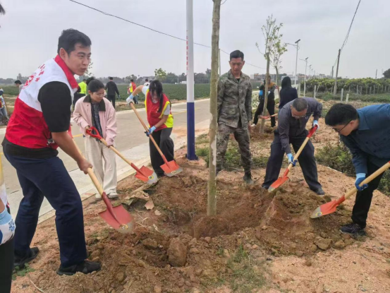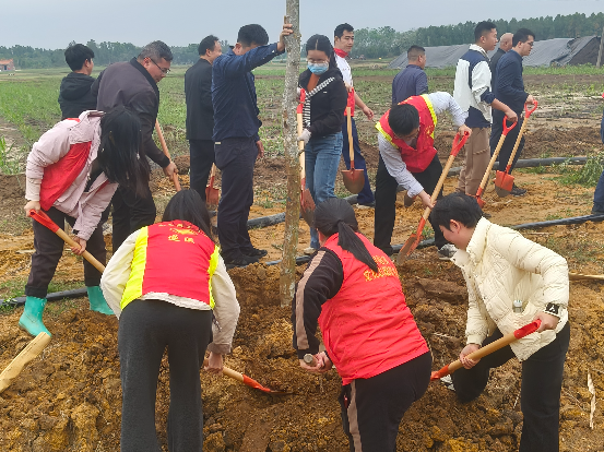 春风拂沃野,植绿正当时。在植树节来临之际,为深入贯彻落实习近平生态文明思想,扎实推进绿美广东生态建设,助力“百千万工程”提质增效,界炮镇以党建红引领生态绿为主题,组织开展义务植树主题党日活动。镇领导班子成员、主任科员及执法队负责人,各村(社区)党支部书记、个协党支部书记,各机关单位负责人、镇中层正职干部、驻村工作队全体成员共计90余人,齐聚界炮镇龙塘村、坦塘村,以实际行动为界炮大地添新绿、植希望,共同描绘生态振兴新图景。
