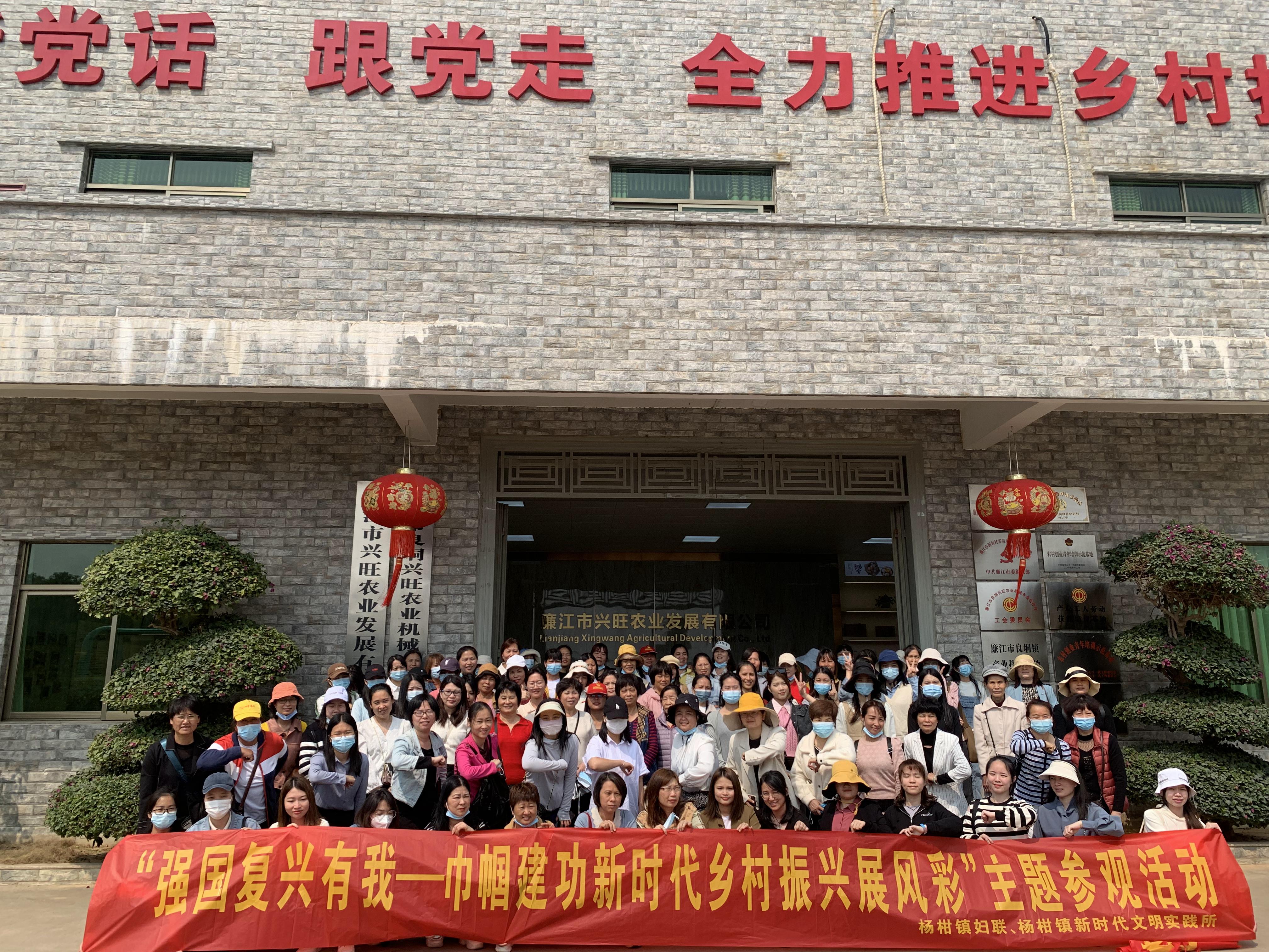 阳春三月,春风拂面。在第113个“三八”国际劳动妇女节来临之际,为深入贯彻落实党的二十大精神,展现巾帼风采,倡导新时代妇女精神,激发广大妇女同志服务社会、服务人民的激情,2023年3月6日,杨柑镇开展以“巾帼共筑同心梦·比学赶超争先锋”——庆“三八”国际妇女节主题活动,组织镇、村妇女干部职工到廉江中塘村、化州广垦国家热带农业公园等实地参观学习,激励广大妇女在乡村振兴中发挥“半边天”作用。
