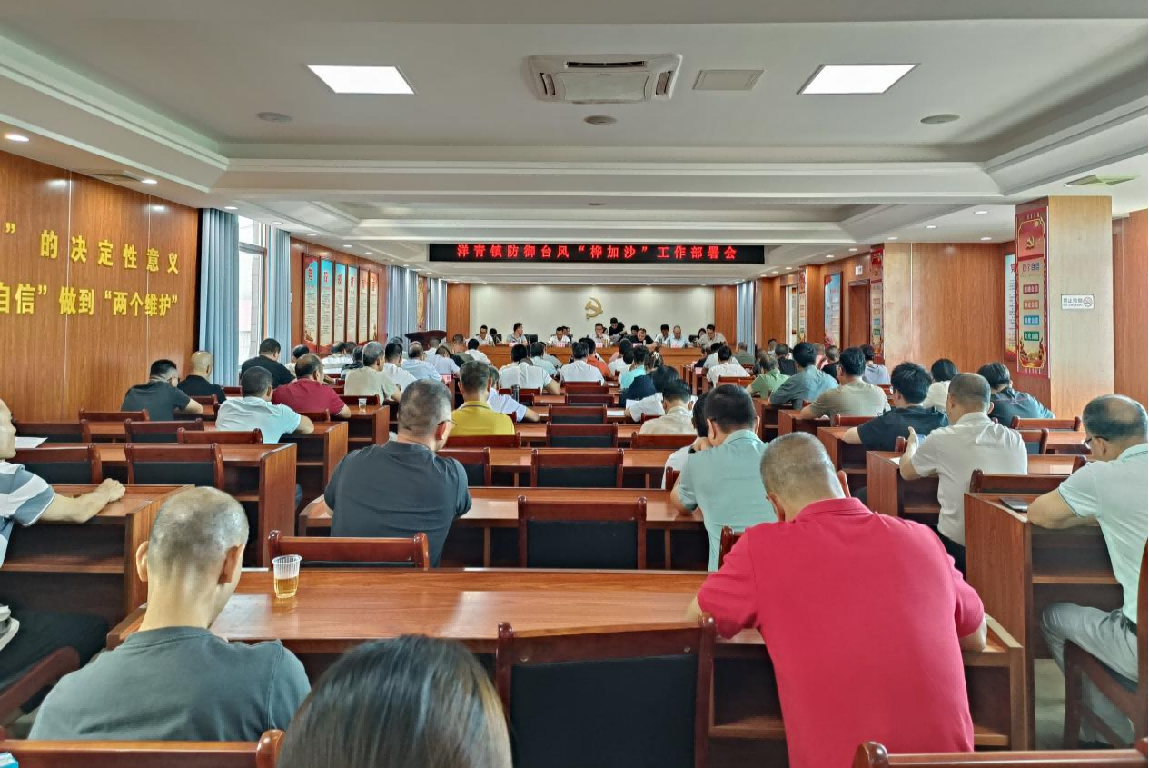 图为洋青镇召开防御台风“桦加沙”工作部署会