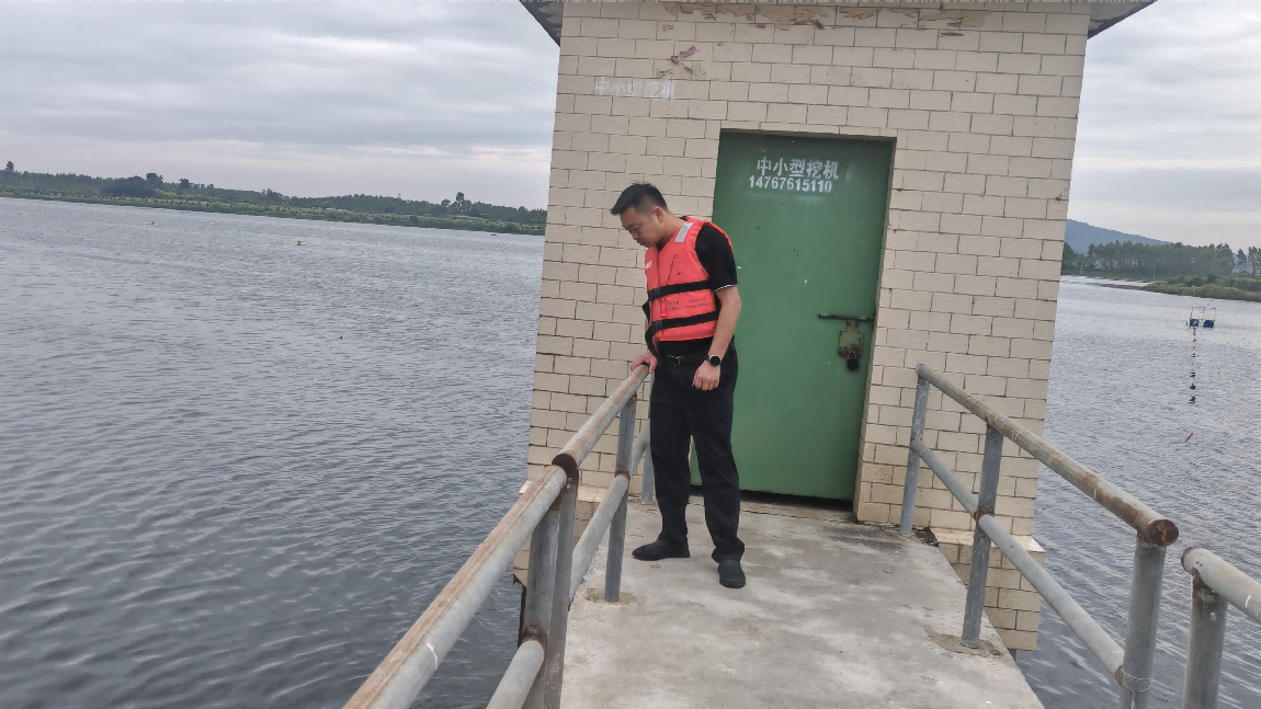 图为洋青镇党委书记陈荣庆到后湖水库等重点区域开展巡查工作