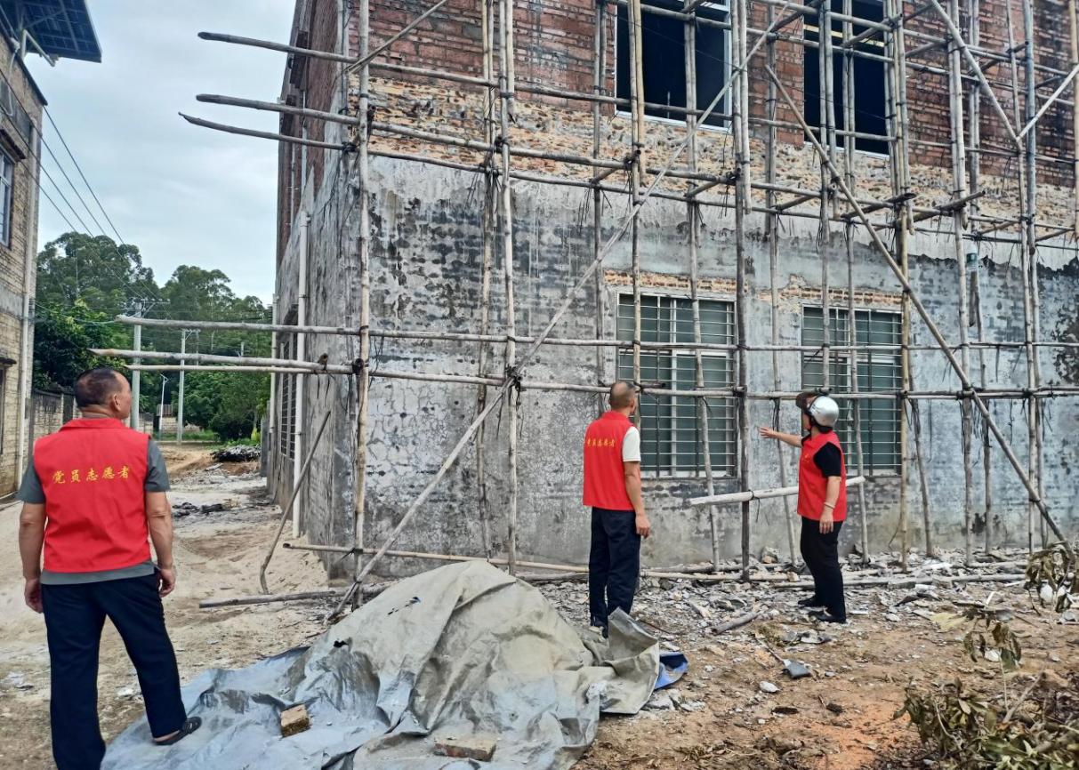 图为牛栏村委会开展建筑工地等重点区域排查工作
