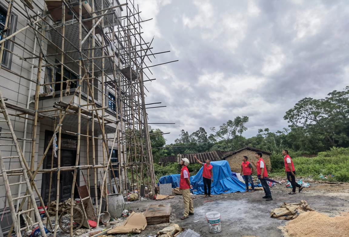 风险隐患即刻排查整治并重点布放。镇村干部会同网格员对中小河流、地质灾害点、危破房、在建民房、学校、低洼易涝区、关键路段等重点部位实行“拉网式”排查,共叫停农户自建房施工92处,加固脚手架62处,共撤离户外施工人员297人,清理路侧广告牌及高空悬挂物63块,疏通排水沟、河流23公里,对发现的低洼水浸路隐患点立即设置警戒线并安排专人24小时监测,确保险情早发现、早处置、早报告。针对水浮坡、文相(外村塘)、外坡、桔子村、古村西、团结、龙头等低洼易涝村,做好低洼地隐患排查及防护措施,并安排专人值守内涝黑点,确保“水不退、人不撤”。