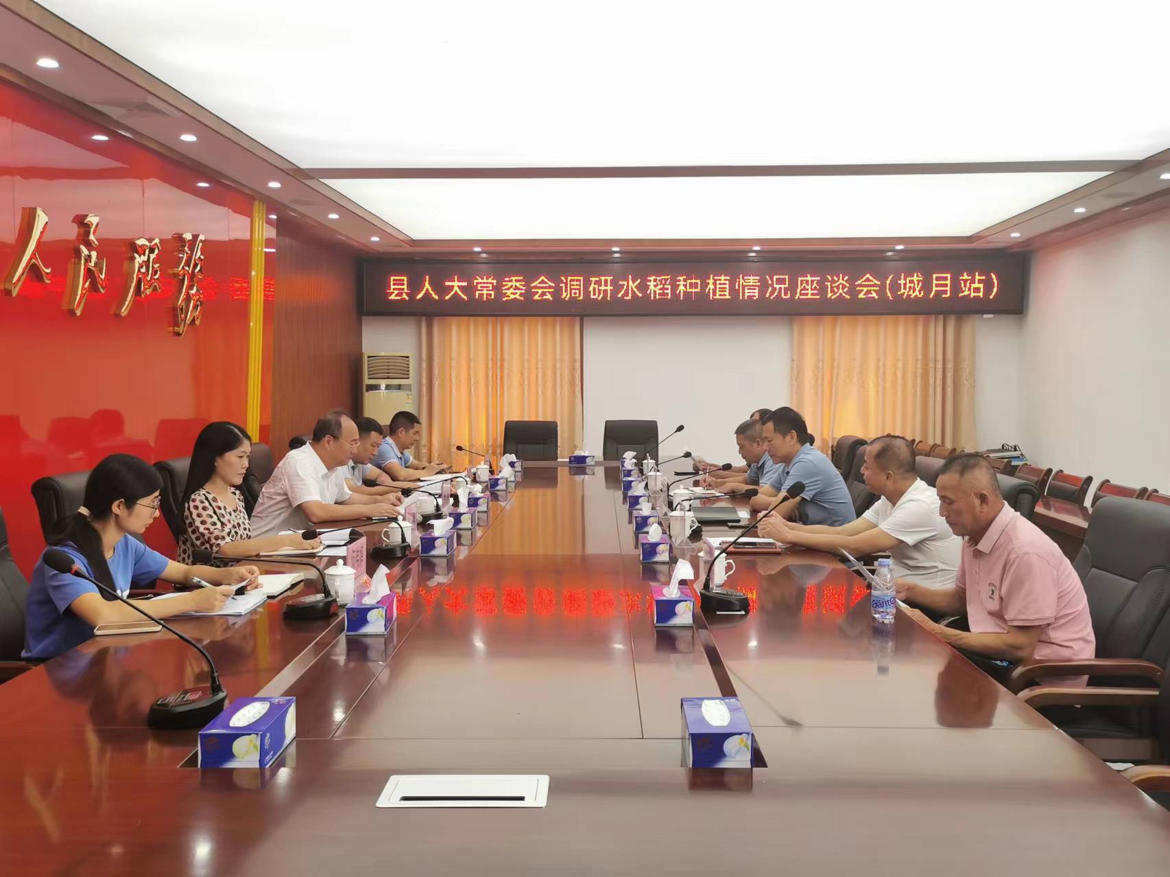 2023年11月7日上午,遂溪县人大常委会党组副书记、副主任陈辉率队到城月镇虎头坡村委会西坡村调研水稻种植情况。陈辉一行深入田间地头,认真查看水稻秧苗长势,与种植大户亲切交流,并详细了解粮食作物的生长情况和粮食生产方面存在的问题难点。接着,陈辉一行来到城月镇政府二楼会议室召开座谈会。会上,陈辉同志对今年来我镇农业取得的成绩给予充分肯定,并指出,要坚决落实粮食安全党政同责制度,提高政治站位,压实压细工作责任,切实抓好当前粮食生产工作。要进一步加大技术指导力度,做好扶持培育工作,不断推动水稻种植管理规范化、规模化、科学化,全力实现提产增效,助推我镇乡村振兴实现高质量发展。