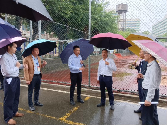10月29日下午,秋意正浓,秋雨淅沥。湛江市教育局四级调研员郑能带领市局体卫艺科相关领导一行四人冒雨到遂溪县调研指导迎接2024年广东省《国家学生体质测试》抽测准备工作。遂溪县教育局局长周炳辉、副局长谢田桂陪同。