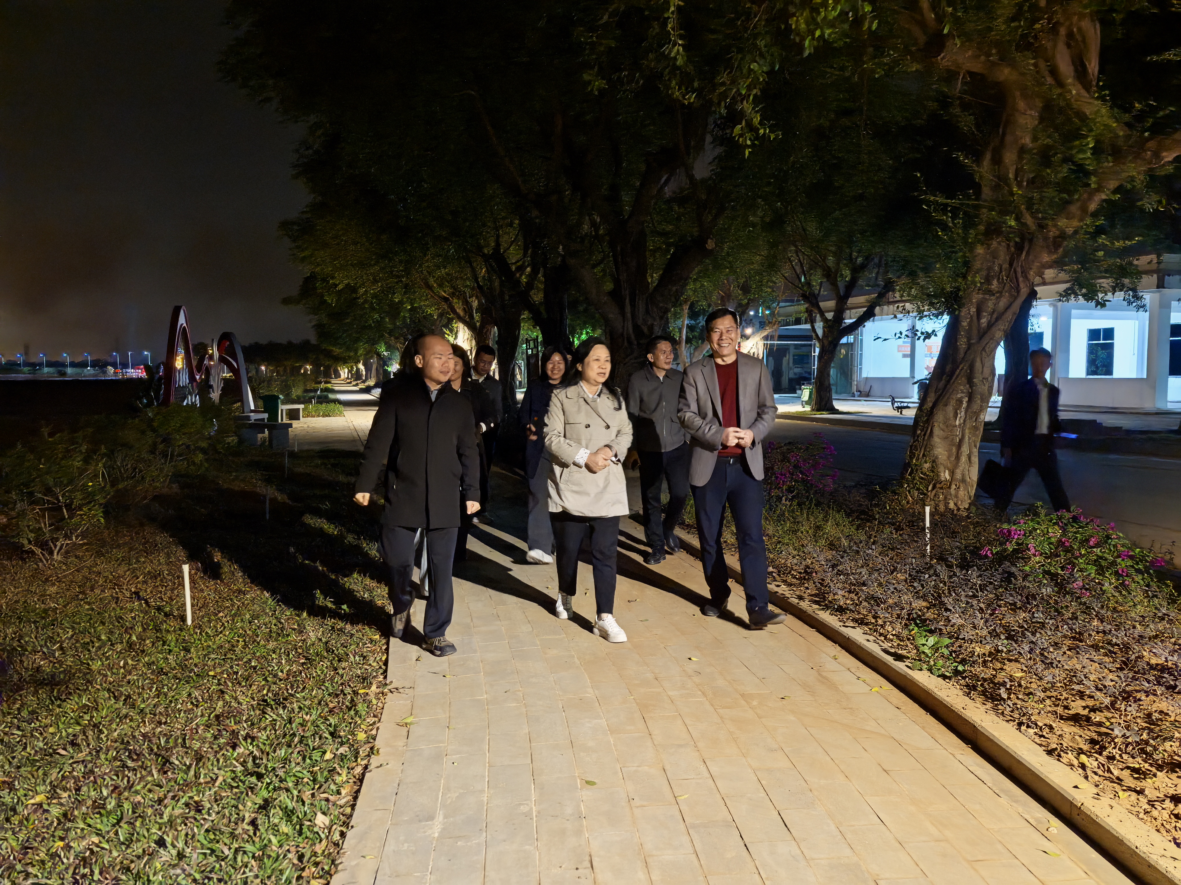 首先,陈国凤一行到现代化岭南新乡村、典型村陈家村进行调研,并深入开展平安夜访活动。国凤主席通过听取汇报、实地查看等方式,对绿美建设、风貌管控、产业发展等进行现场指导,对实施所取得的成效给予了肯定,并指出:一是陈家村结合村庄风貌打造的环村绿道非常有特色,村庄要持续做好苗木管护工作,巩固乡村绿化成果,厚植绿色发展底色;二是坚持共建共治共享,充分利用村内妇女日常会团结一起参加广场舞、制作手工艺等团队活动的机会,共商共议村庄事务、推动解决村内矛盾,不断深化基层治理,持续探索创新“妯娌”推动治理新模式;三是广泛发动群众的力量,深入开展“我的家乡我建设”行动,扎实做好人居环境整治工作,逐步加快农房风貌管控提升工作进度;四是立足资源禀赋优势,有效盘活“荔枝林”,培育具有市场竞争力的特色产品,进一步壮大集体经济,促进群众增收致富。