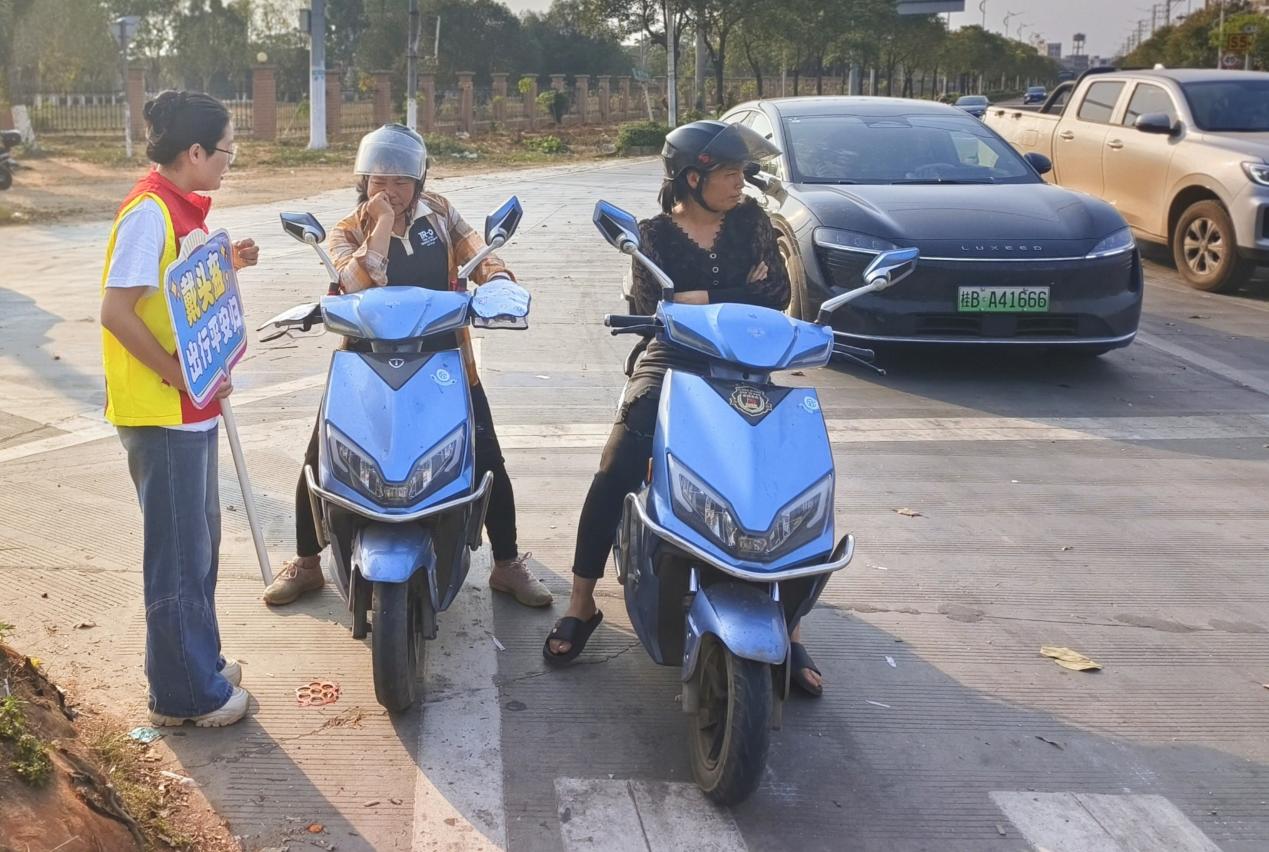 一张张温馨的笑脸,一句句恳切的话语在城月镇的主要交通路口、学校门口传递着文明信息,通过开展文明交通劝导活动,有效提升了群众出行头盔佩戴率和文明安全意识,进一步消除交通安全隐患,为营造安全、有序、文明、畅通的道路交通环境打下坚实基础。
