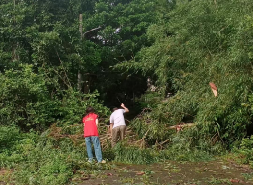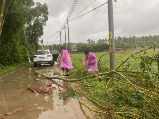 抢险清障现场,镇干部统筹调度,协调物资、推进进度,时刻关注群众需求;村干部带头实干,挥舞工具清理自家周边及公共区域的垃圾、淤泥,协助转移危险区域群众;民兵们凭借过硬作风,搬运沉重倒伏树木、拆除危险电线杆,全力清除道路障碍 。面对恶劣环境,众人不怕脏、不怕累,连续作战,齐心清理垃圾、树枝、倒伏植被等,保障道路尽快畅通,为后续救援与复工复产打通“生命线”。
