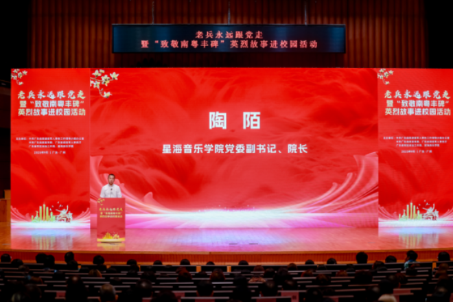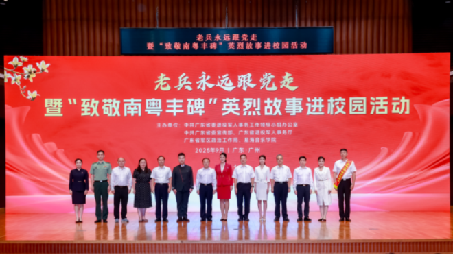 今年是中国人民抗日战争暨世界反法西斯战争胜利80周年、中国人民志愿军抗美援朝出国作战75周年。9月10日,由中共广东省委退役军人事务工作领导小组办公室、中共广东省委宣传部、广东省退役军人事务厅、广东省军区政治工作局、星海音乐学院等单位共同主办的“老兵永远跟党走”暨“致敬南粤丰碑”英烈故事进校园活动在星海音乐学院成功举办。