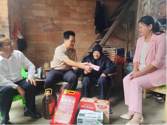 在湛川村苏瑶芳老人家中,慰问组一行与老人及其家属亲切交谈,详细询问老人的饮食起居、身体健康状况以及日常生活中遇到的困难和需求。今年103岁的苏瑶芳老人精神矍铄,思路清晰,看到慰问组的到来,脸上洋溢着幸福的笑容,不断向大家道谢。蒲火元副县长反复叮嘱老人的家属要悉心照料老人的饮食起居,多关心老人的身心健康,让老人安享幸福晚年。同时,他要求随行的镇村干部要时刻把老年群体的冷暖放在心上,认真落实各项养老优待政策,积极为老年人排忧解难,不断提升老年人的获得感、幸福感和安全感。