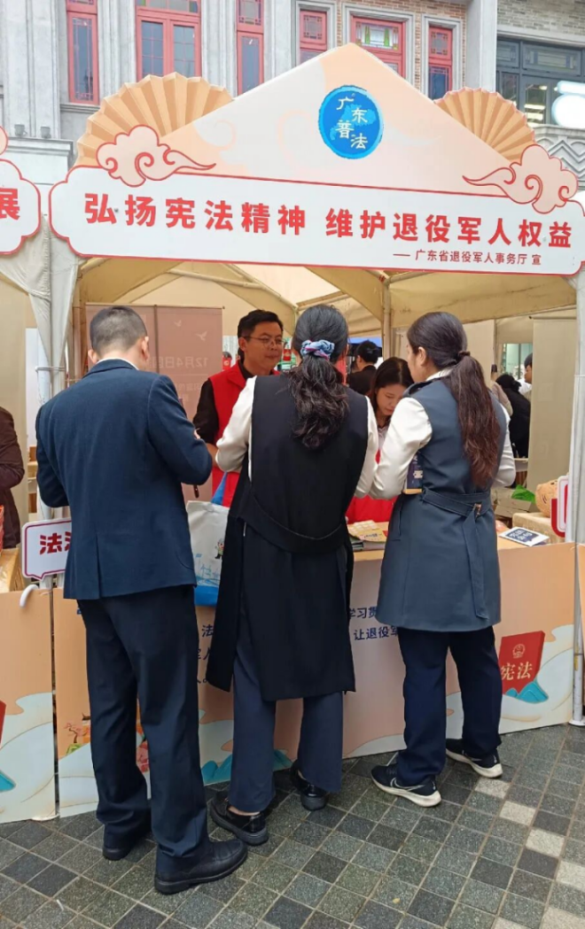今年是习近平法治思想正式提出5周年,12月4日是第十二个国家宪法日。为弘扬宪法精神,维护宪法权威,近日,根据省“宪法宣传周”活动安排,广东省退役军人事务厅赴广州市荔湾区永庆坊岭南特色法治文化街区开展“弘扬宪法精神,维护退役军人权益”为主题的普法宣传活动。
