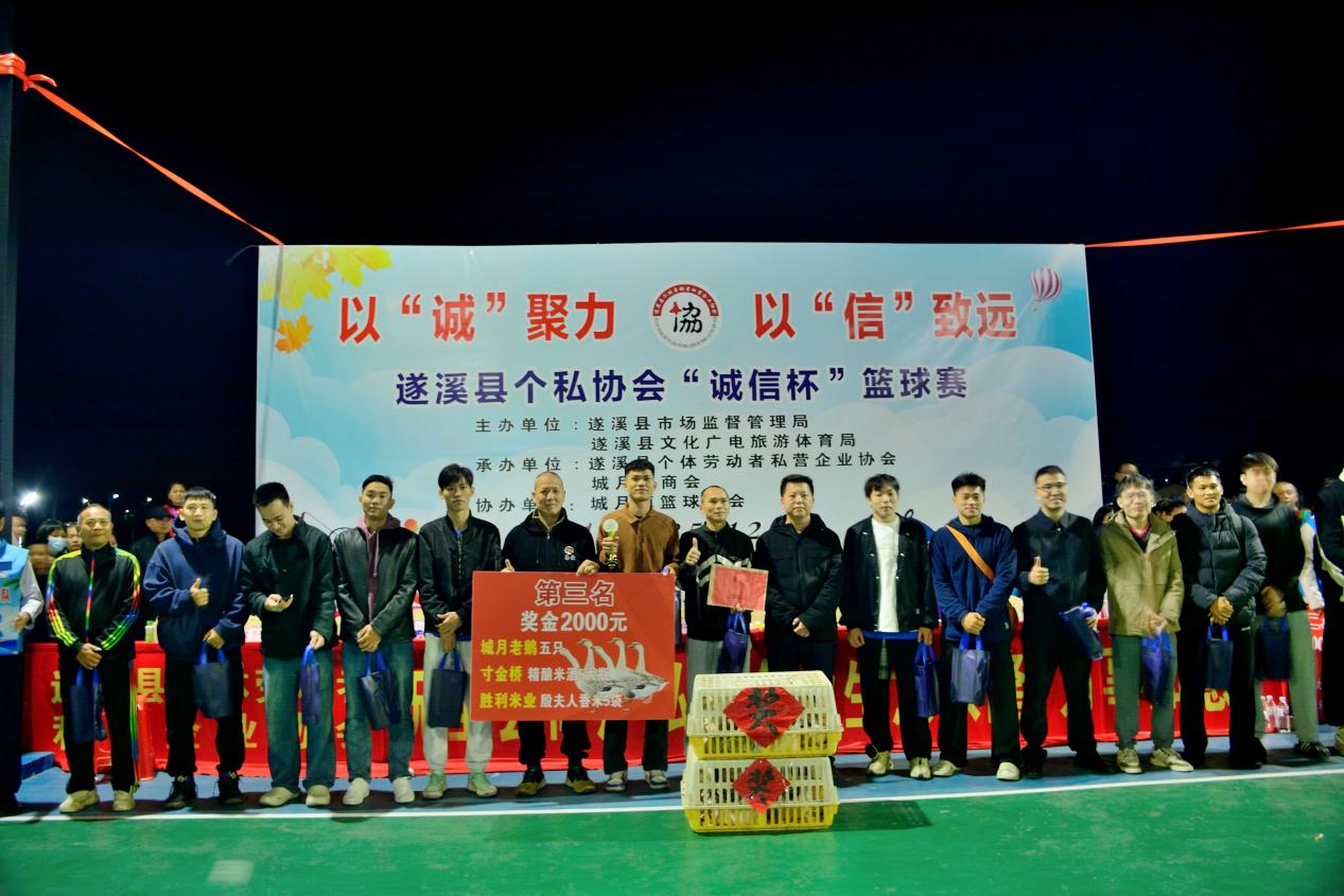 最终,城月队以70:68赢得本届“诚信杯”篮球赛的总冠军。遂城队获得亚军,河头队收获季军。草潭队则因在赛事组织参与中表现突出,荣获优秀组织奖。