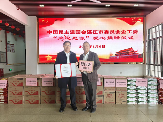 2026年1月6日,新年伊始,民建湛江市委会企工委在遂溪县社会福利院举办“同心思源”爱心公益捐助活动。遂溪县委常委、统战部部长朱凌静,民建湛江市委会主委、湛江市文联主席陈冰湖,民建湛江市委会副主委、企工委主任戴林生,遂溪县委统战部常务副部长许志群,遂溪县民政局局长郑辉等领导共同参加活动并发言。