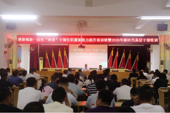 为深入学习贯彻党的二十届四中全会和中央农村工作会议精神,全面落实习近平总书记视察广东重要讲话、重要指示精神,做好村“两委”换届“后半篇文章”,切实推动换届后新任村“两委”干部快速转变角色、补齐业务短板、提升履职效能,筑牢基层党组织战斗堡垒,2026年3月-4月,建新镇精心组织开展新一届村“两委”干部履职能力提升系列轮训,紧扣遂溪县新时代基层干部轮训“送教下基层”工作要求,聚焦基层工作实际需求,以精准培训赋能基层干部实干担当,为全镇全面推进乡村振兴、深入实施“百千万工程”锻造过硬基层干部队伍。