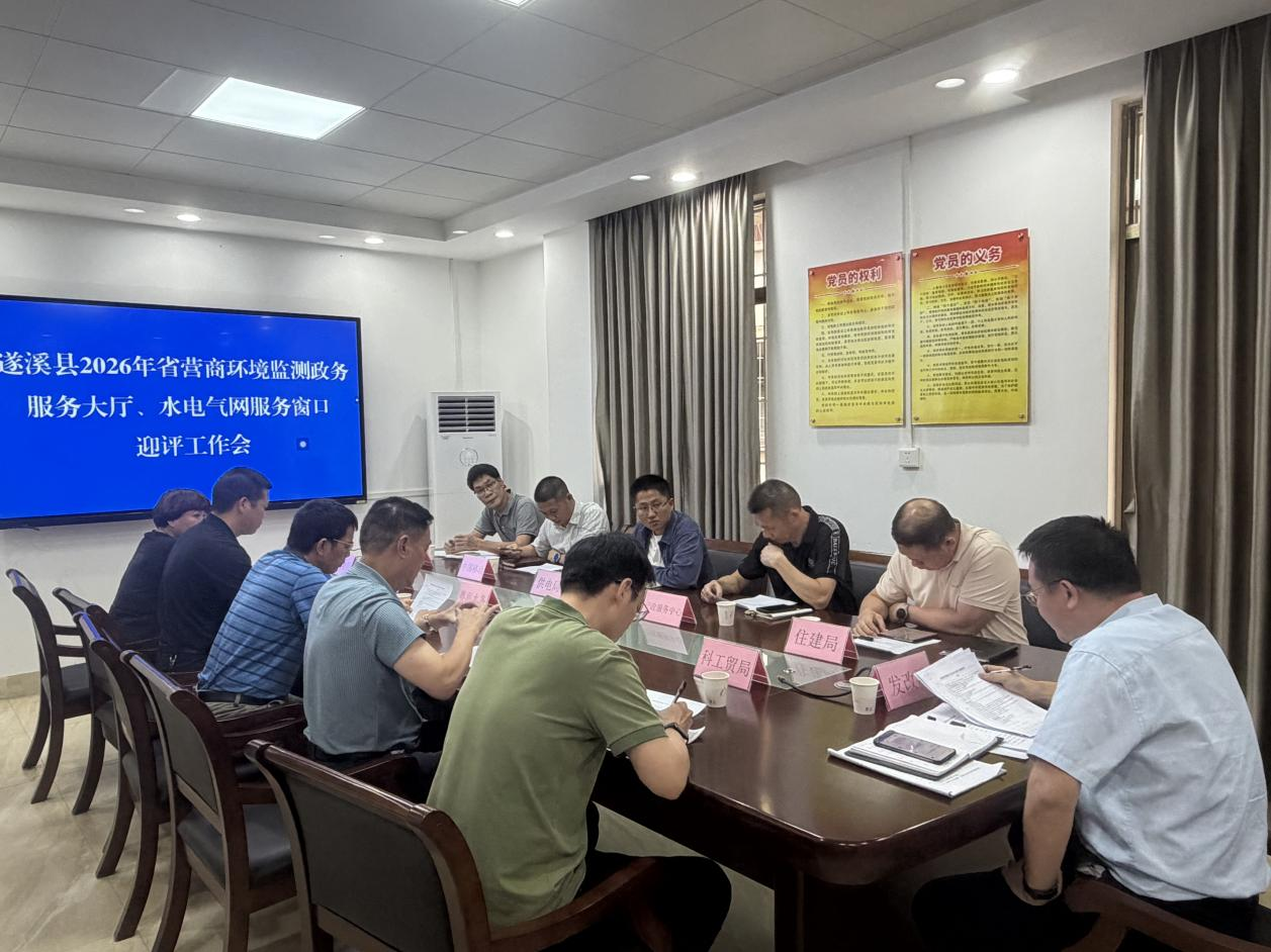 2026年4月23日下午,县发改局组织召开2026年省营商环境监测暨政务服务大厅、水电气服务窗口迎评工作部署会。县发改局、县科工贸局、县住建局、县水务局、县行政服务中心、县供电局,遂溪粤海水务、遂溪华润燃气及三大通信运营商分管负责人参加会议。