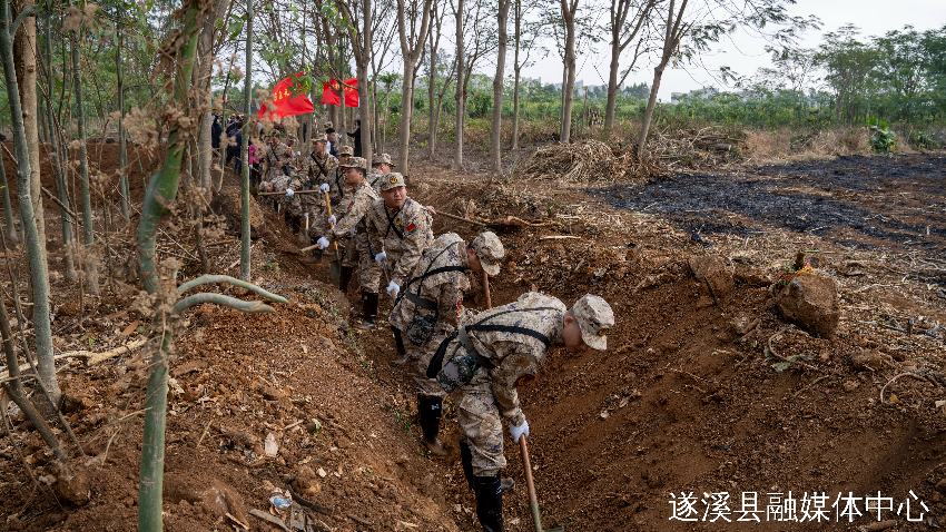 春风轻拂,草木欣欣,为深入贯彻落实省委、省政府和省军区关于发动民兵力量参加环北部湾广东水资源配置工程二期建设指示精神,2月19日上午,民兵参加环北部湾广东水资源配置工程二期建设启动仪式在遂溪县遂城街道罗过岭山塘主会场举行,同时在黄略镇潭河村山塘设立分会场,全面拉开民兵参加环北部湾广东水资源配置工程二期建设首战行动的序幕。