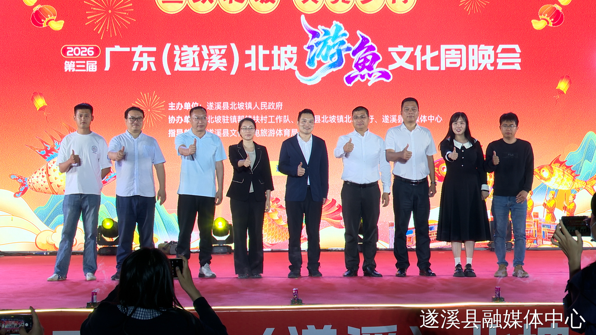 湛江市文广旅体局副局长莫智铣,遂溪县委副书记喻锦扬,遂溪县文广旅体局、遂溪县总工会等单位领导,北坡镇领导班子成员、镇机关企事业单位、各村(社区)党组织负责人,驻镇帮镇扶村工作队成员以及北坡游鱼非遗传承人、群众游客参加开幕式。