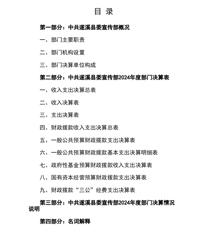 2024年度中共遂溪县委宣传部部门决算 | | 作者: | 来源:中共遂溪县委宣传部 | 时间:2025-09-17 15:55:15 点击数:- 2024年度中共遂溪县委宣传部部门决算.pdf 【打印正文】