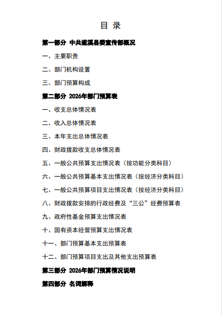 2026年中共遂溪县委宣传部部门预算 | | 作者: | 来源:中共遂溪县委宣传部 | 时间:2026-03-31 10:53:57 点击数:- 2026年中共遂溪县委宣传部部门预算.pdf 【打印正文】