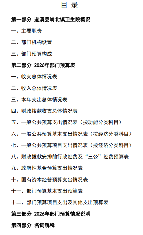 2026年遂溪县岭北镇卫生院部门预算 | | 作者: | 来源:遂溪县卫生健康局 | 时间:2026-03-31 11:05:41 点击数:- 2026年遂溪县岭北镇卫生院部门预算.pdf 【打印正文】
