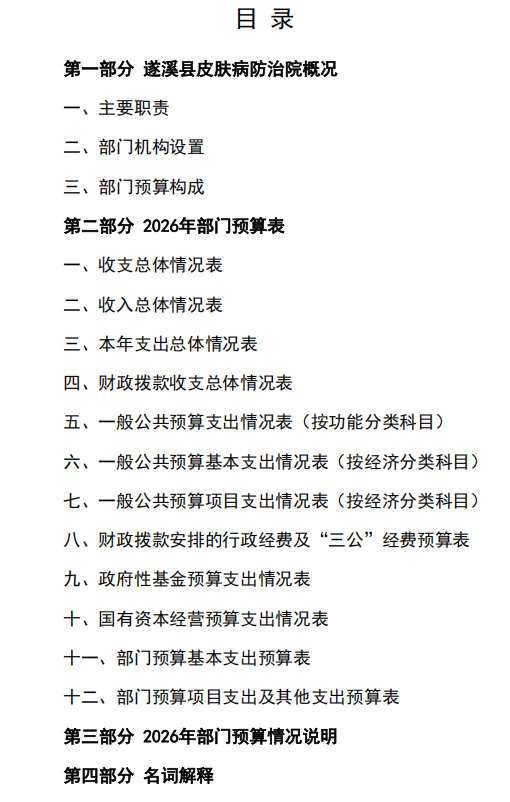 2026年遂溪县皮肤病防治院部门预算 | | 作者: | 来源:遂溪县卫生健康局 | 时间:2026-03-31 15:07:26 点击数:- 2026年遂溪县皮肤病防治院部门预算.pdf 【打印正文】