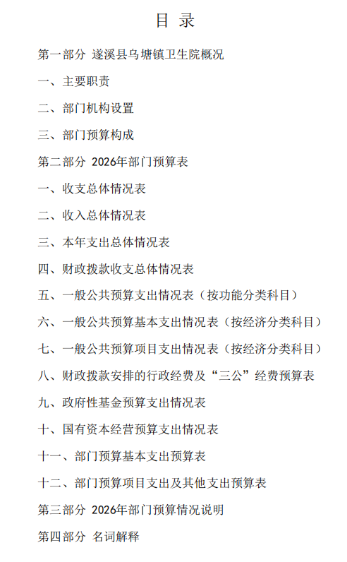2026年遂溪县乌塘镇卫生院部门预算 | | 作者: | 来源:遂溪县卫生健康局 | 时间:2026-03-31 15:25:59 点击数:- 2026年遂溪县乌塘镇卫生院部门预算.pdf 【打印正文】
