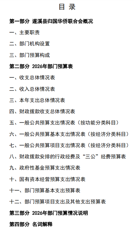 2026年遂溪县归国华侨联合会部门预算 | | 作者: | 来源:遂溪县归国华侨联合会 | 时间:2026-04-01 09:23:07 点击数:- 2026年遂溪县归国华侨联合会部门预算.pdf 【打印正文】