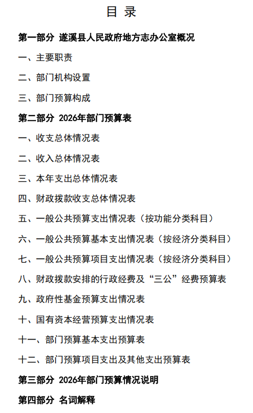 2026年遂溪县人民政府地方志办公室部门预算报告 | | 作者: | 来源:遂溪县人民政府地方志办公室 | 时间:2026-04-01 09:36:06 点击数:- 2026年遂溪县人民政府地方志办公室部门预算报告.pdf 【打印正文】