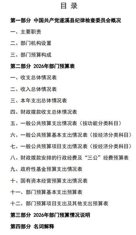 2026年中国共产党遂溪县纪律检查委员会部门预算 | | 作者: | 来源:中国共产党遂溪县纪律检查委员会 | 时间:2026-04-01 10:16:16 点击数:- 2026年中国共产党遂溪县纪律检查委员会部门预算.pdf 【打印正文】