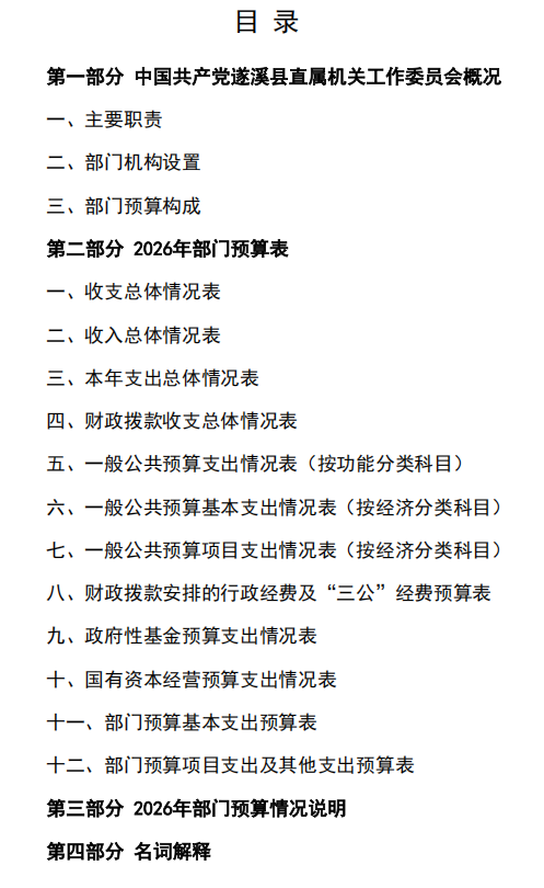 2026年中国共产党遂溪县直属机关工作委员会部门预算 | | 作者: | 来源:中国共产党遂溪县直属机关工作委员会 | 时间:2026-04-01 10:17:33 点击数:- 2026年中国共产党遂溪县直属机关工作委员会部门预算.pdf 【打印正文】