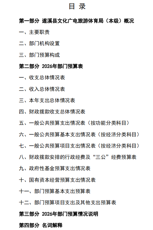 2026年遂溪县文化广电旅游体育局(本级)部门预算 | | 作者: | 来源:遂溪县文化广电旅游体育局 | 时间:2026-04-01 10:54:56 点击数:- 2026年遂溪县文化广电旅游体育局(本级)部门预算.pdf 【打印正文】