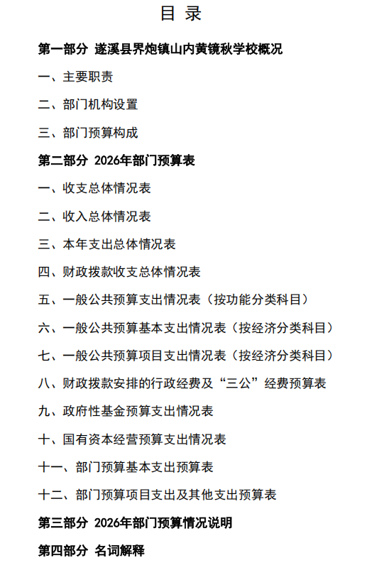 2026年遂溪县界炮镇山内黄镜秋学校部门预算 | | 作者: | 来源:遂溪县教育局 | 时间:2026-04-01 17:32:52 点击数:- 2026年遂溪县界炮镇山内黄镜秋学校部门预算.pdf 【打印正文】