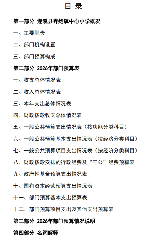 2026年遂溪县界炮镇中心小学部门预算 | | 作者: | 来源:遂溪县教育局 | 时间:2026-04-01 17:34:13 点击数:- 2026年遂溪县界炮镇中心小学部门预算.pdf 【打印正文】