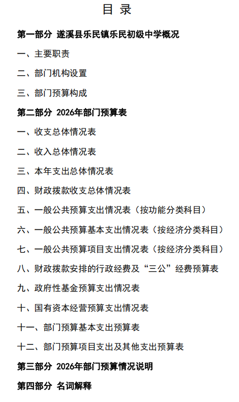 2026年遂溪县乐民镇乐民初级中学部门预算 | | 作者: | 来源:遂溪县教育局 | 时间:2026-04-01 17:38:13 点击数:- 2026年遂溪县乐民镇乐民初级中学部门预算.pdf 【打印正文】