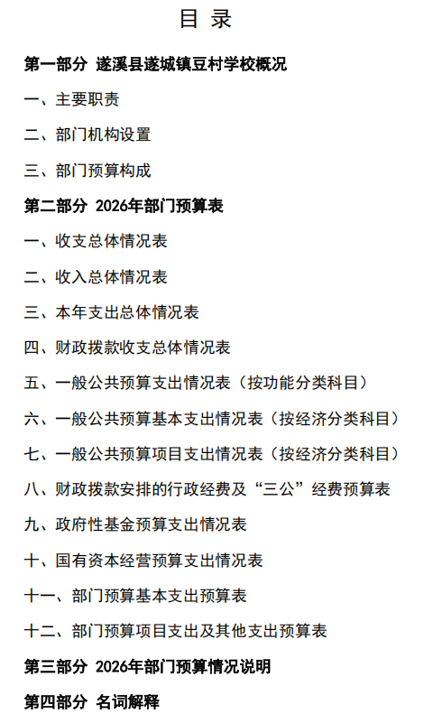 2026年遂溪县遂城镇豆村学校部门预算 | | 作者: | 来源:遂溪县教育局 | 时间:2026-04-02 09:53:28 点击数:- 2026年遂溪县遂城镇豆村学校部门预算.pdf 【打印正文】