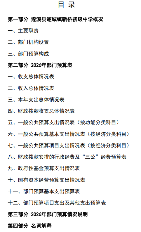 2026年遂溪县遂城镇新桥初级中学部门预算 | | 作者: | 来源:遂溪县教育局 | 时间:2026-04-02 09:56:39 点击数:- 2026年遂溪县遂城镇新桥初级中学部门预算.pdf 【打印正文】