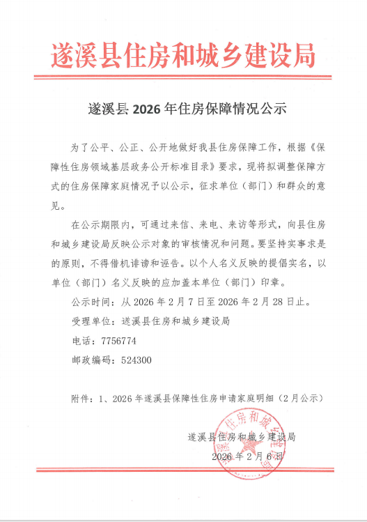 遂溪县2026年住房保障情况公示