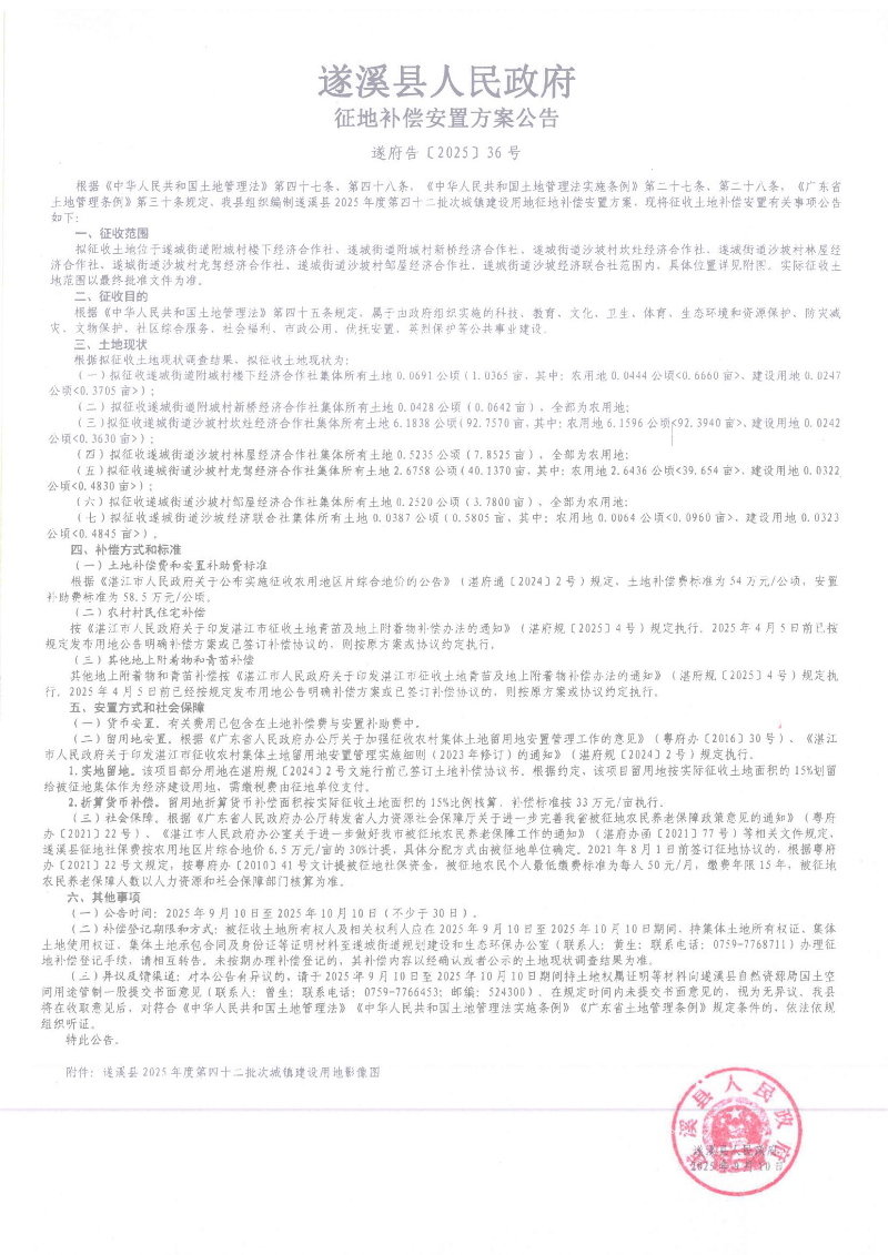 遂溪县人民政府 征地补偿安置方案公告 遂府告〔2025〕36号