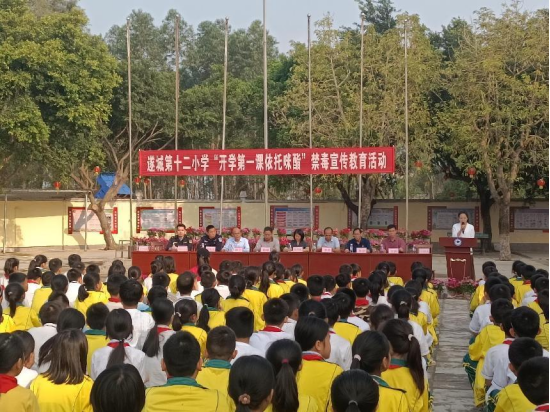 为进一步普及新型毒品“依托咪酯”的相关知识,持续抓好青少年毒品预防教育工作,增强广大师生的禁毒意识,提高自觉抵制毒品侵害的能力,2月21日上午,遂溪县城综局会同遂城街道办事处、遂溪县公安局、遂溪县教育局、遂溪县人民法院在遂城第十二小学开展“开学第一课 防范依托咪酯”禁毒主题宣传活动。