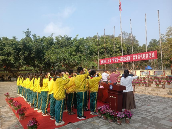 活动中,工作人员为全体师生普及毒品的相关知识,并指出毒品对我们生活的危害,宣传远离毒品的方法,同时号召全校师生进行禁毒宣誓,铿锵有力的禁毒誓词体现了全体师生坚定不移的禁毒决心。