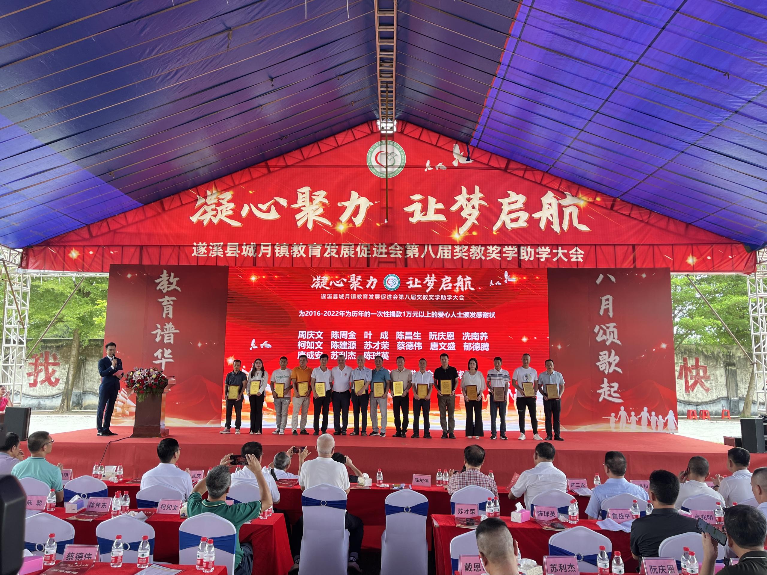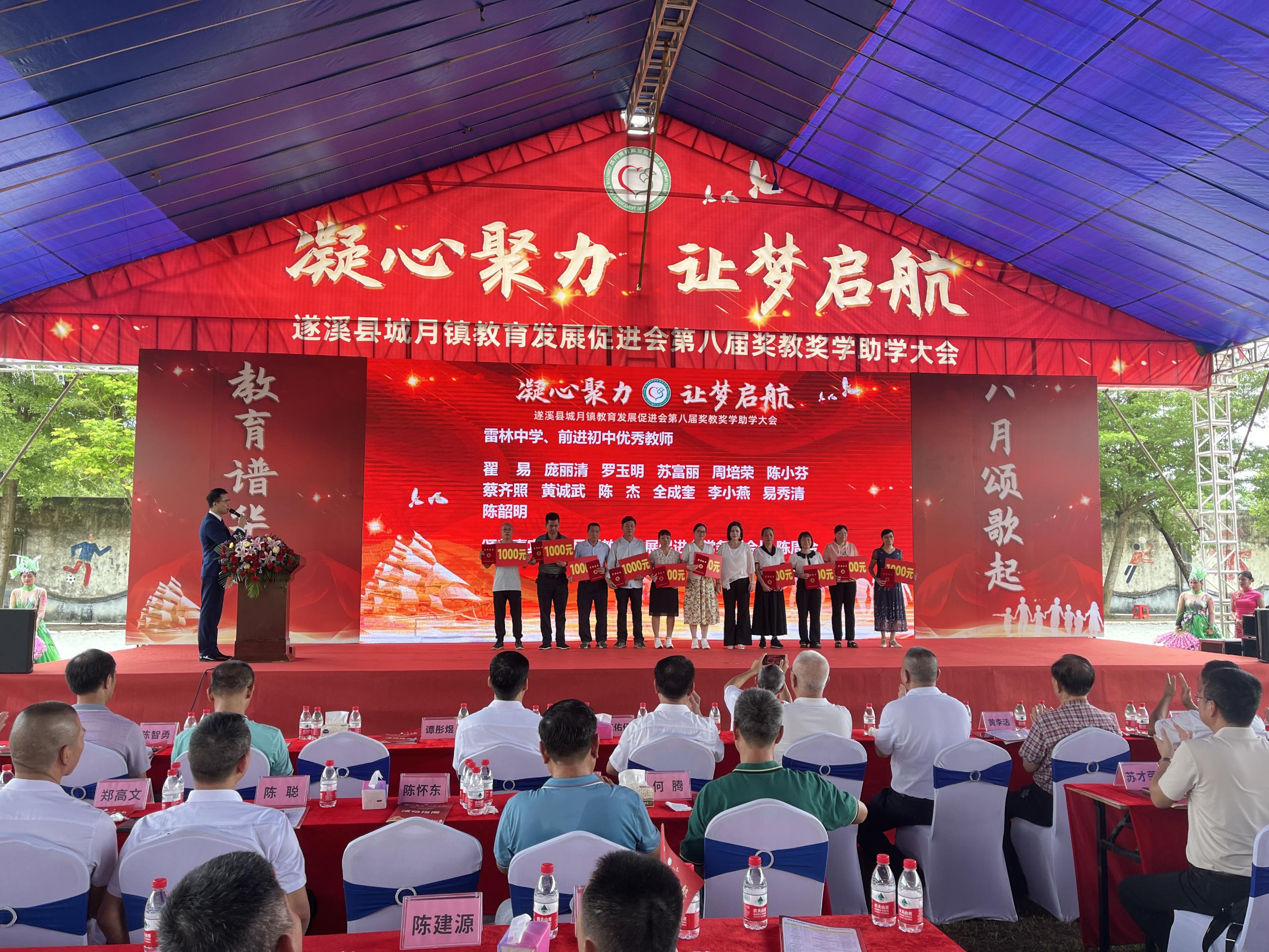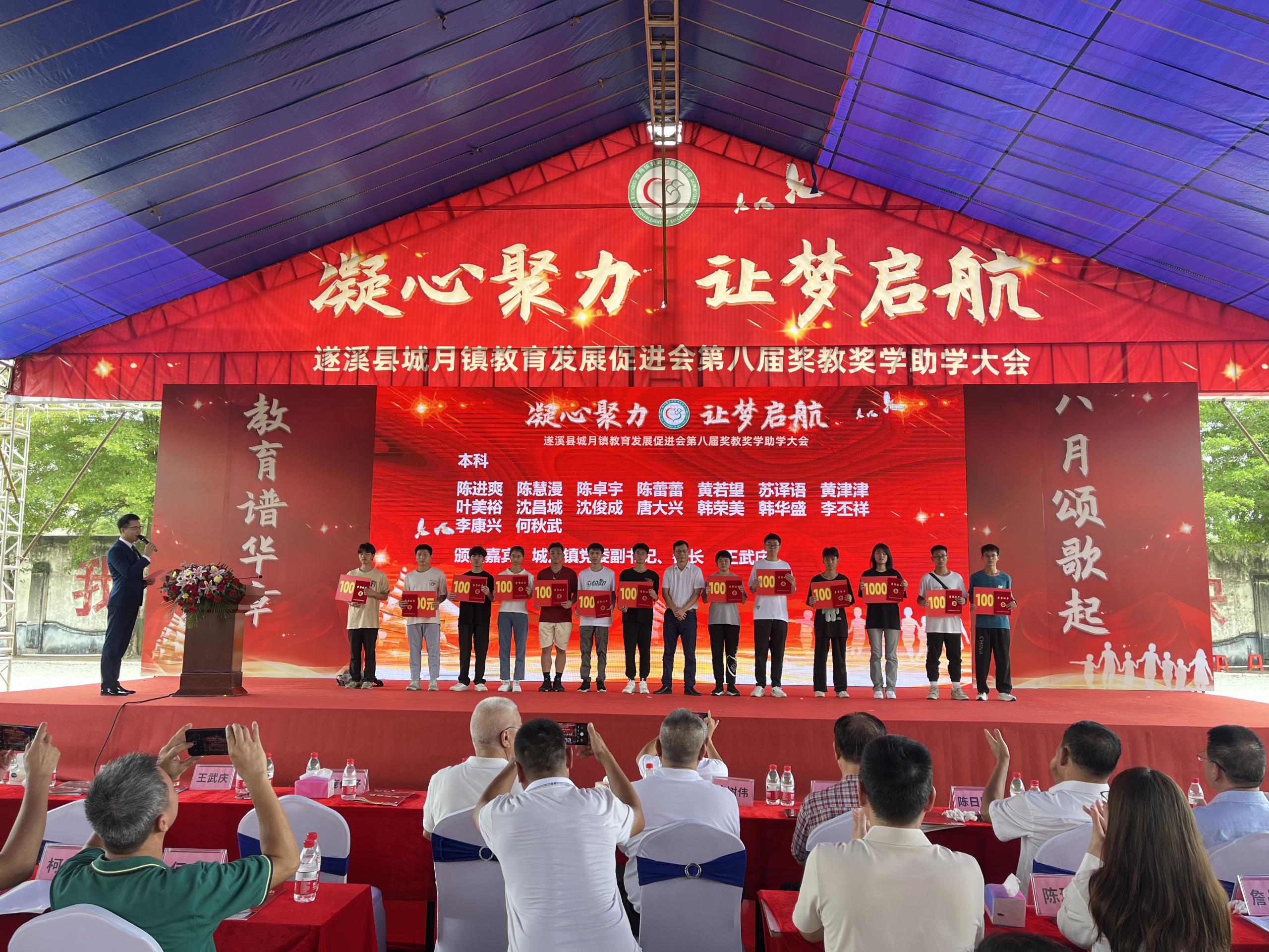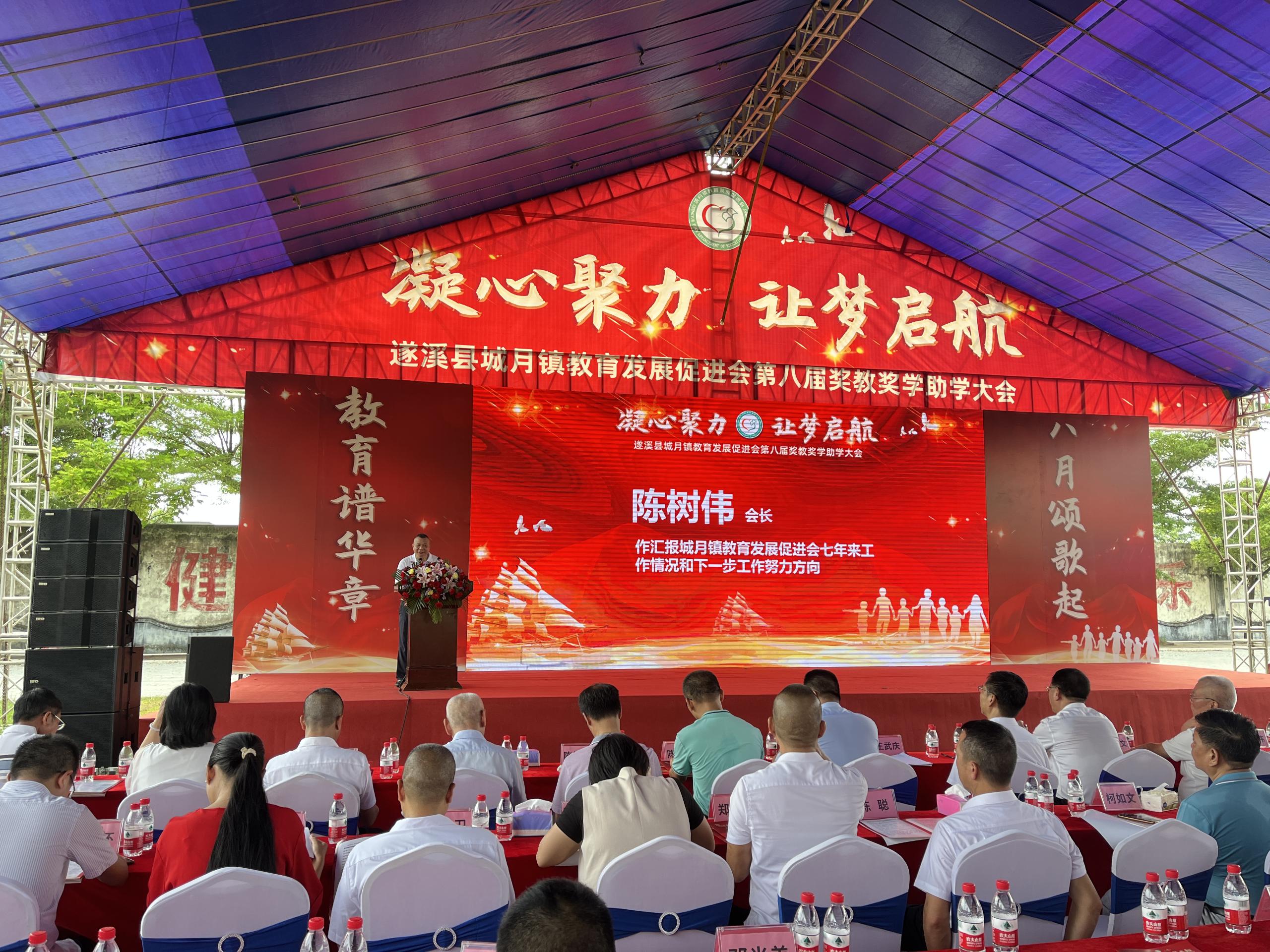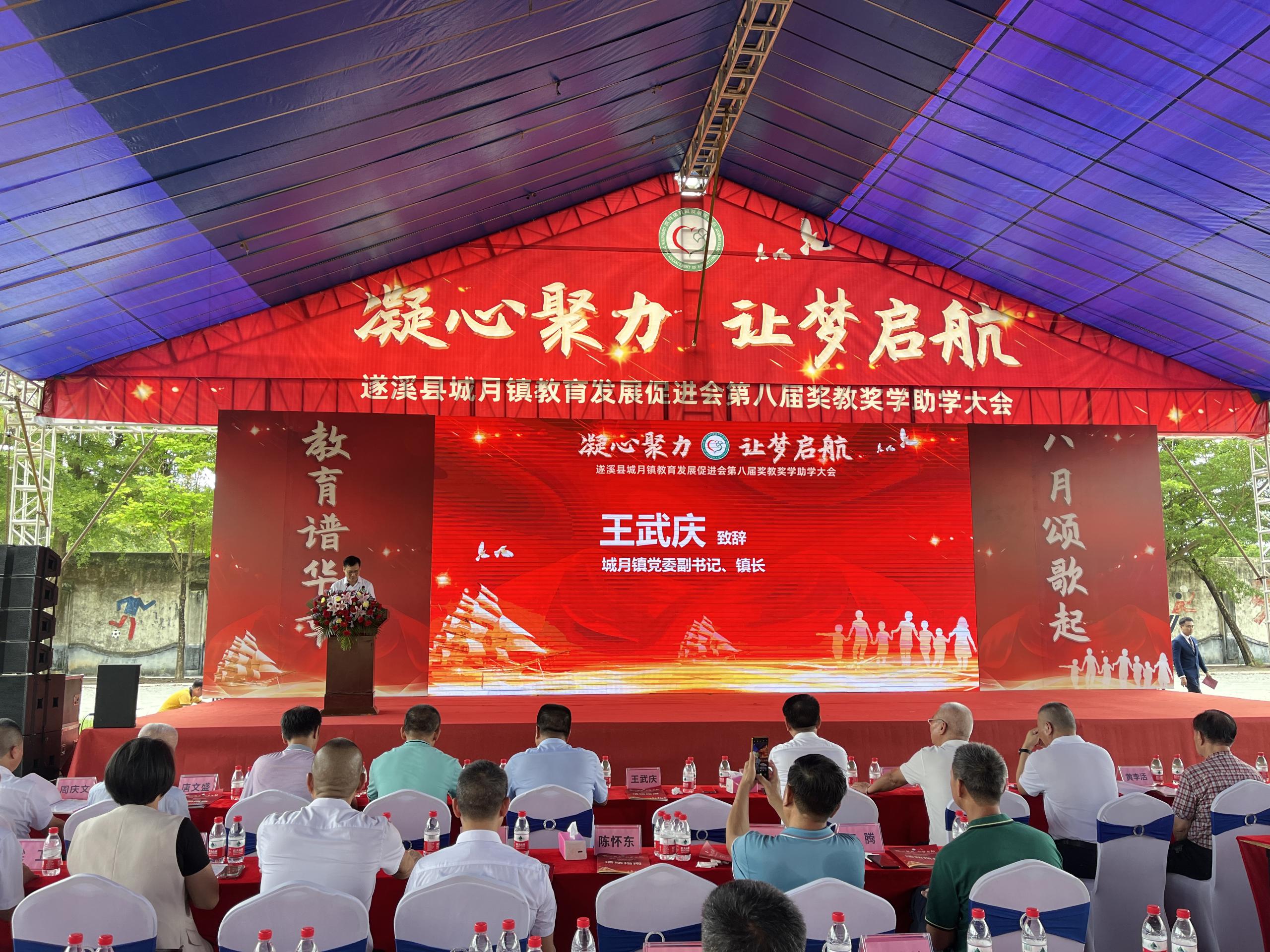 为表彰教育先进典型和优秀学子,展现广大人民教师和教育工作者爱国奋斗、立德树人的精神风貌,汇报城月镇莘莘学子们寒窗苦读后取得的傲然成绩,促进城月镇教育事业发展再上新台阶,2023年8月19日上午,城月镇教育发展促进会在城月中学举行第八届奖教奖学助学大会。城月镇党委副书记、镇长王武庆等镇全体班子成员,教育促进会会长陈树伟等促进会成员以及杰出乡贤,城月籍有关领导,县有关领导,镇各办公室主任(负责人),镇各机关(企)事业单位负责人,镇各中小学校校长(负责人),各村(社区)党支部书记,各自然村村长,教师代表和优秀学子等出席活动。会上,武庆镇长及树伟会长等领导乡贤向获得奖教奖学金的教师和学生们表示衷心祝贺,并寄予殷切期望,希望同学们永葆感恩之心、感激之情,以只争朝夕的精神,发愤图强、再接再厉,以优异成绩回报社会,以学有所成回馈桑梓;也希望全镇广大教育工作者时刻铭记教书育人的崇高使命,继续引导学生成长成才。要进一步凝聚各方合力,携手奋进、砥砺前行,不断推动全镇教育事业取得新进步、赢得新发展。