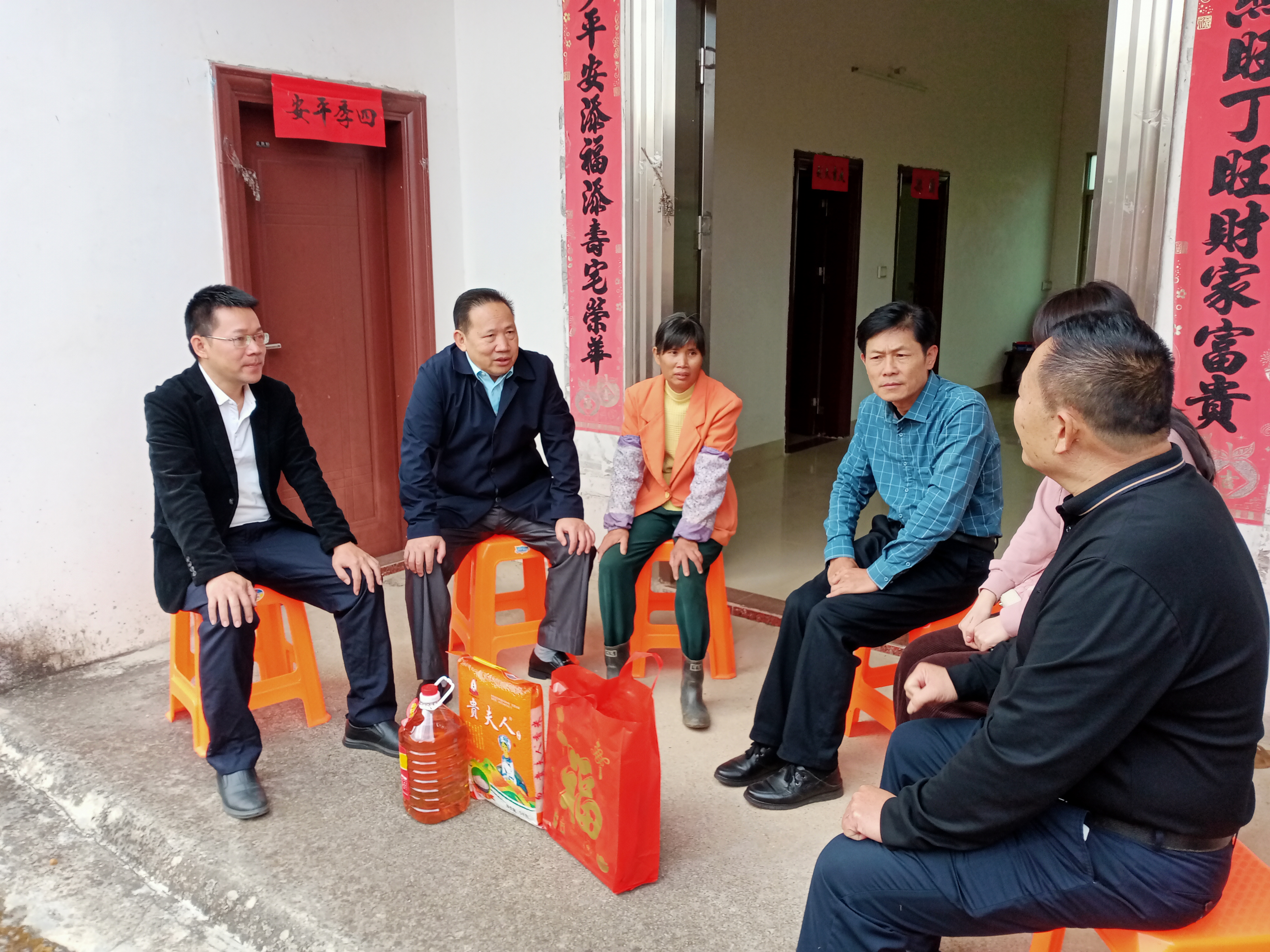 2024年1月17日,中共湛江市委党史研究室主任曹程、副主任李振龙,在城月镇党委副书记、镇长王武庆、镇党委副书记、乡村振兴工作队长卢兆明、市委党史研究室派驻仁里村乡村振兴工作组长叶劲春副科长、城月镇党委委员陈土君以及仁里村党支部书记黄英荣同志的陪同下,到仁里村对蔡某华等10户脱贫户进行春节慰问。