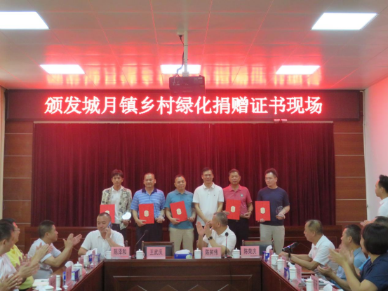 会上,镇党委委员欧薇薇汇报了城月镇乡村绿化工作以及人才工作提质情况,她表示,城月镇将坚定不移地举全镇之力攻坚绿美生态建设,为推动“百千万工程”典型镇注入强劲的绿色动能。随后武庆镇长为杰出乡贤颁发城月镇乡村绿化捐赠证书。