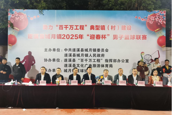 镇人大主席陈怀东在致辞中表示,本次男篮联赛,是我镇深入推进“百千万工程”,丰富群众精神文化生活,持续推动全民健身事业发展的重要举措。希望各位以此为契机,进一步凝聚人心、鼓舞士气,把在赛场上展现出的团结协作、顽强拼搏的精神,转化为推动工作的强大动力,积极投身到“百千万工程”典型镇(村)建设和各项重点工作中,为实现城月镇高质量发展贡献自己的力量。
