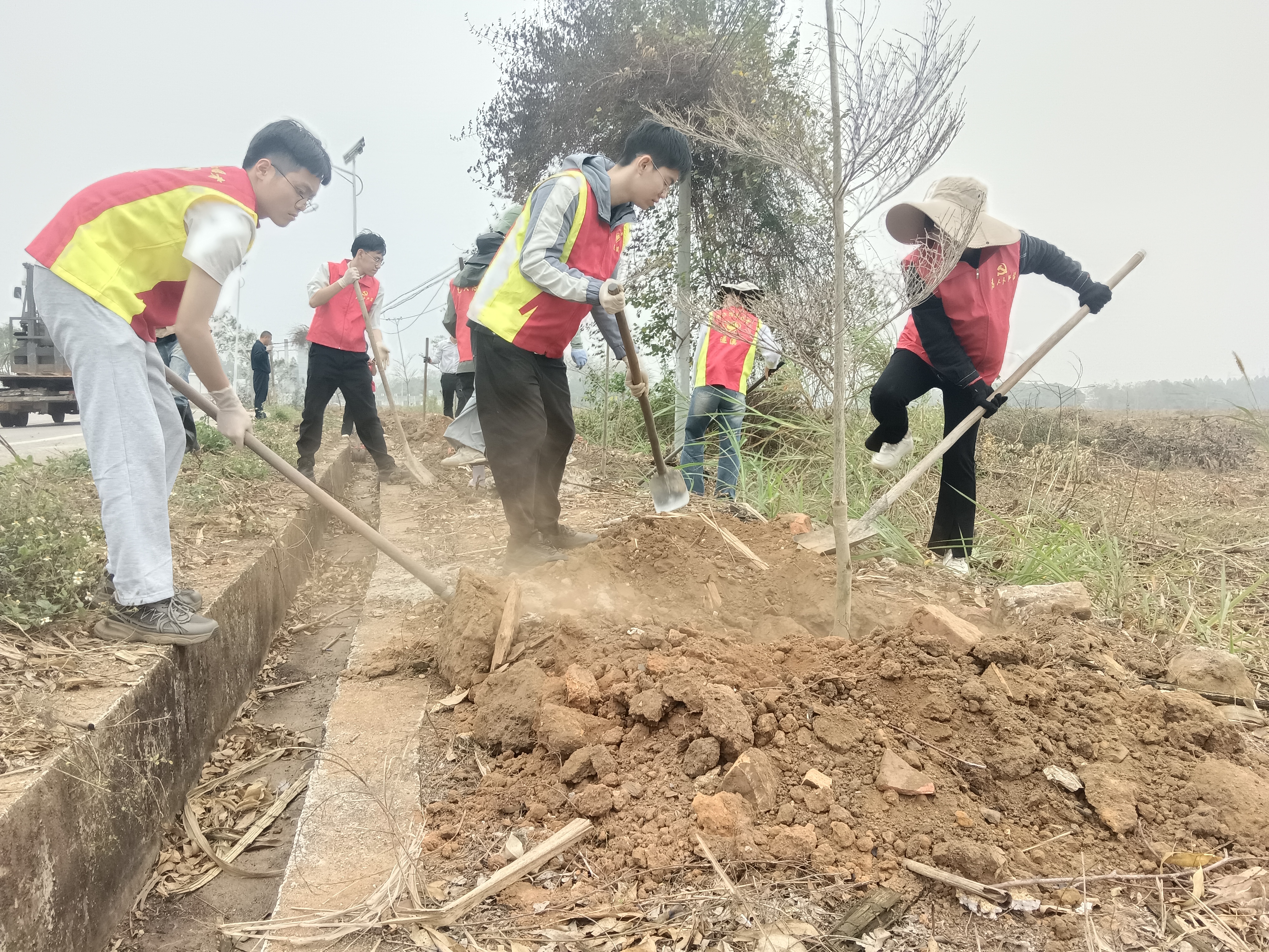 2025年3月5日下午,城月镇政府联合中建二局第二建筑工程有限公司,组织镇干部、企业代表、村“两委”干部、“双百”社工和群众代表共同开展义务植树活动。通过党政企群合力,在S545省道邦机和潭葛路段种植小叶榄仁、桂花等苗木200棵,进一步推动乡村绿化和风貌提升相融合,为沿线风貌增绿添彩,共筑城月道路生态屏障。